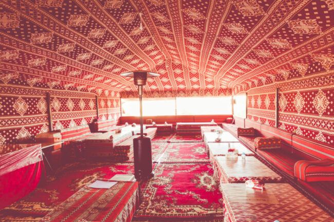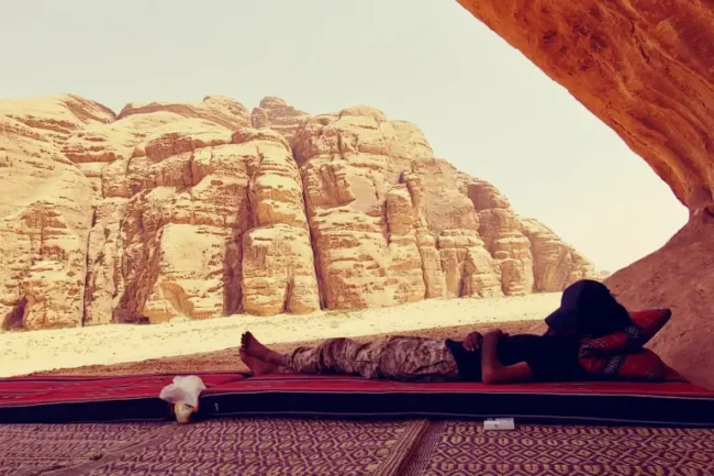 Imaginez que vous vous réveillez au son léger des oiseaux dans leur gazouillis matinal et que tout le reste soit silencieux. L’air est rafraîchissant alors que le soleil se lève et projette sa lumière sur les montagnes du Wadi Rum. Les couleurs changent. A coup sûr, une nuit dans le désert sera le point culminant de votre visite.