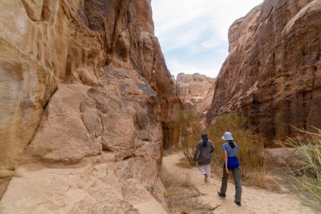 En passant une deuxième journée avec nous, vous ferez déjà partie de la famille. Nous pourrons vous faire découvrir le sud du désert, plus sauvage, à la limite de la frontière saoudienne. Nous vous emmènerons sur le Jebel Al-Hash : un des sommets du désert qui présente l’avantage de pouvoir être atteint par différents chemins (de facile à scrambling). Une magnifique vue vous attend au sommet. Ensuite, après le lunch nous vous emmènerons au Jebel Nukra, notre coin préféré du désert. Ce circuit permet d’alterner les voyages en jeep avec des portions à pied sur les rochers et dans le sable. Et pourquoi pas monter quelques minutes sur un dromadaire à la fin ? Nous pouvons également organiser des randonnées ou trails itinérants sur plusieurs jours, avec nuit en bivouac. Nous nous occupons bien sûr de transférer nourriture, eau et effets personnels.